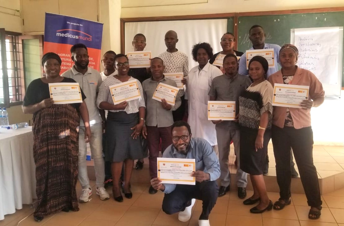 Curs inicial de Salut Matern‑Infantil (ESMI) en el CFSP (Pemba), amb 20 dones formades i graduades.